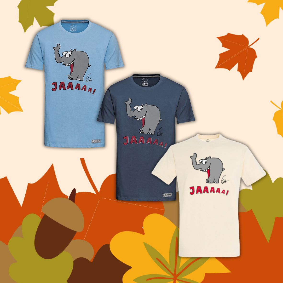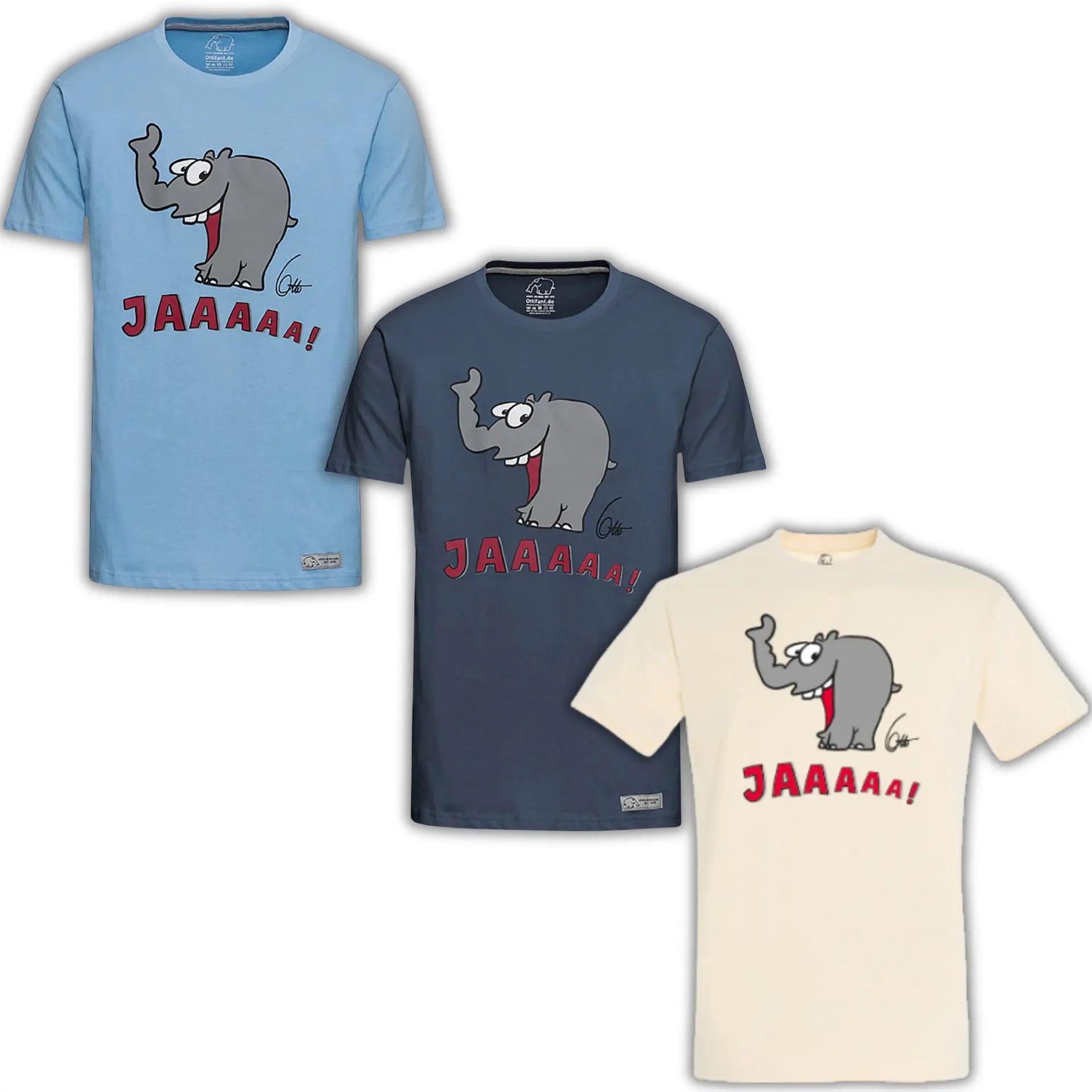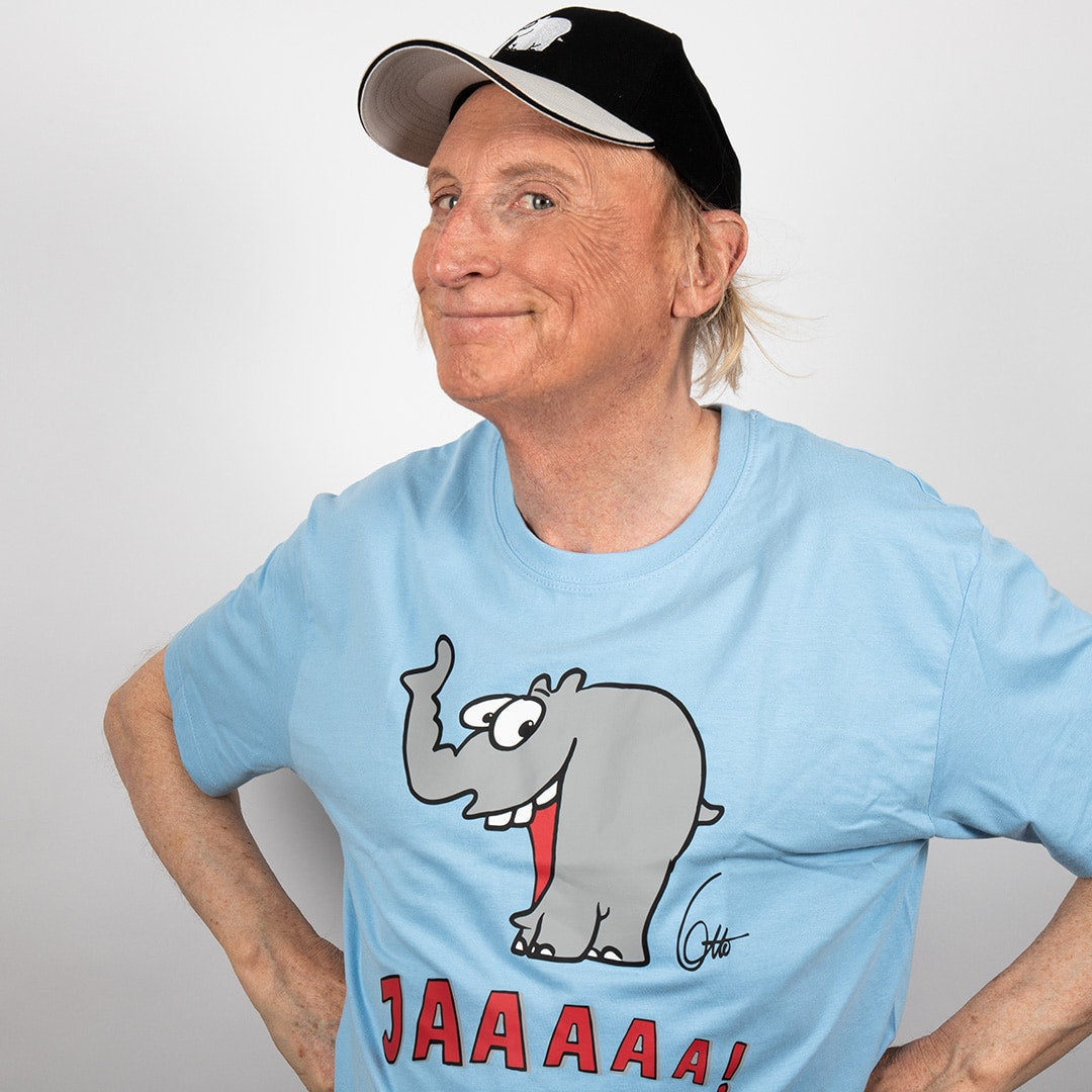 T-Shirt "Lachender Ottifant" Unisex by Otto Waalkes in denim, blau und sand