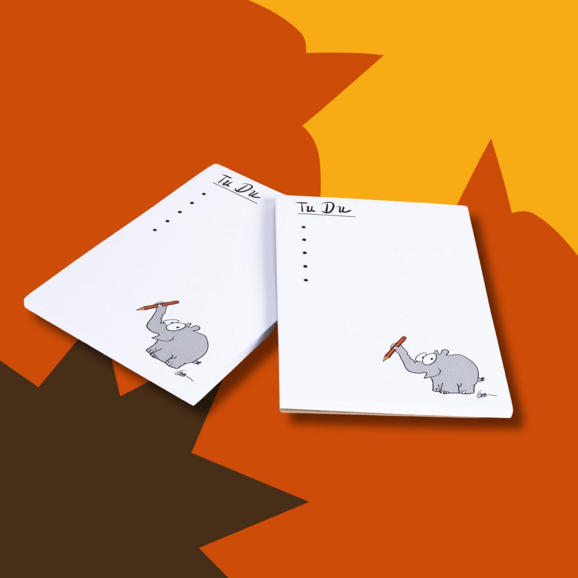 2x Ottifanten Block "To do". Hier machen offline Notizen so richtig Spaß! Mit diesem kleinen Schreibblock wird eine Notiz zu einem echten Hingucker. Auf jedem Notizzettel sind die niedlichen kleinen Ottifanten gedruckt und sorgen für viel gute Laune.