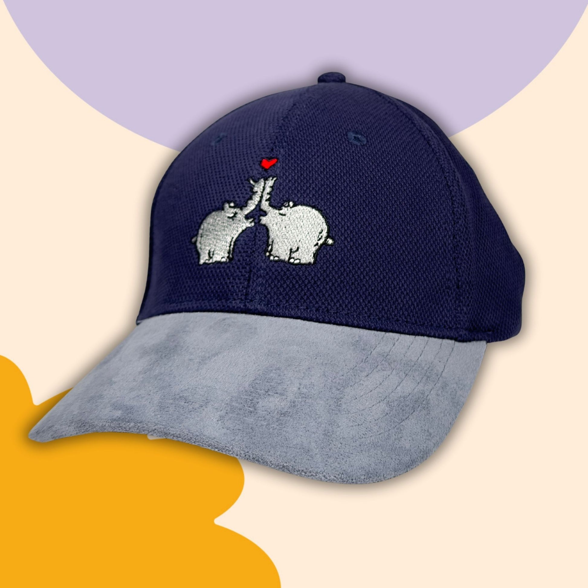 Die neue dunkelblaue Cap ist der ideale Begleiter für jeden Tag. Die Cap ist aus einem weichen und dünnen Stoff, der mit den küssenden Ottifanten bestickt ist. Hinten ist - wie immer - die Signatur von Otto eingestickt.