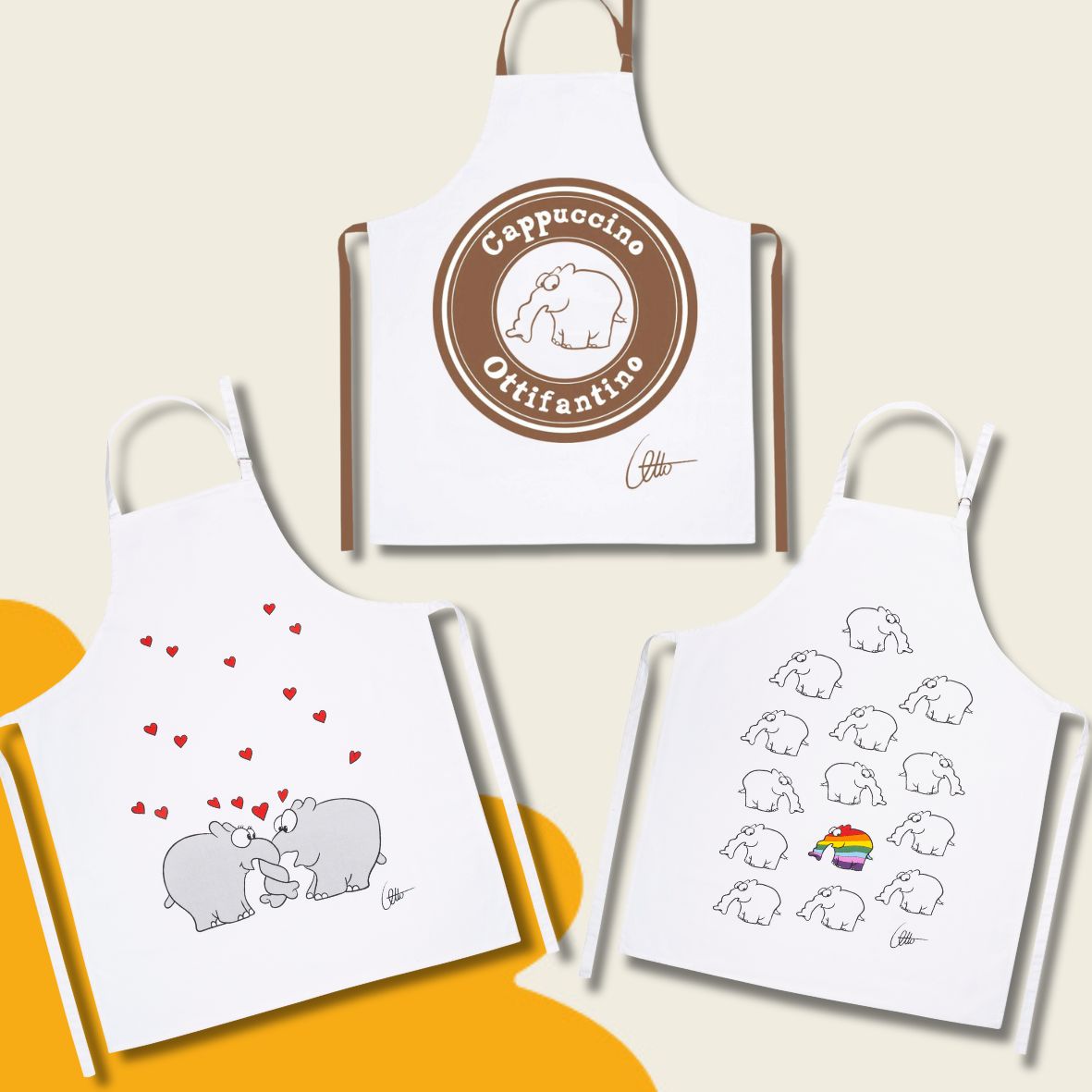Zusammen mit den Küchentüchern ergeben die Schürzen ein ottifantastsiches Küchenset!
