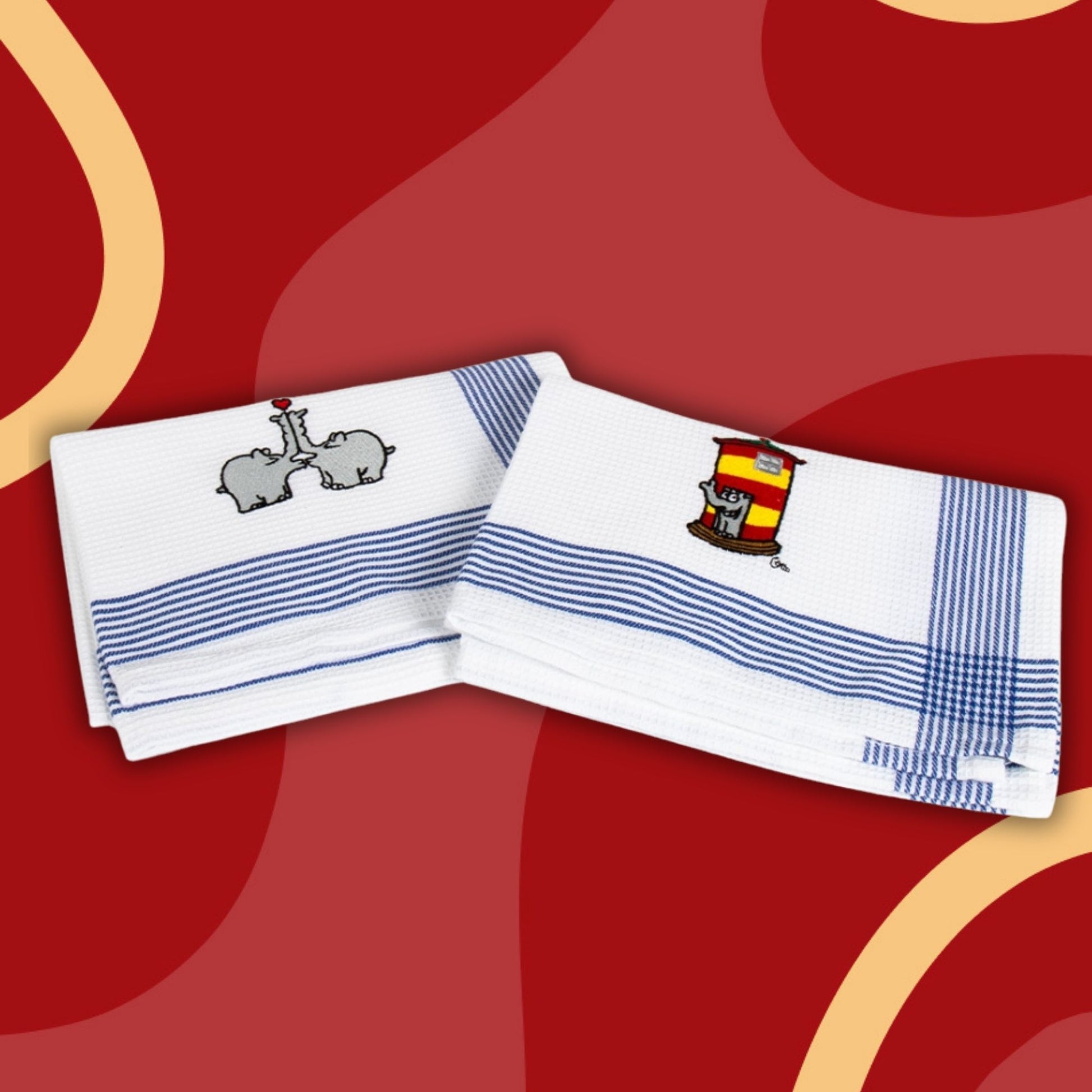 Jetzt NEU! Hochwertige Geschirrhandtücher aus Baumwolle, bestickt mit zwei verschiedenen Ottifanten Motiven