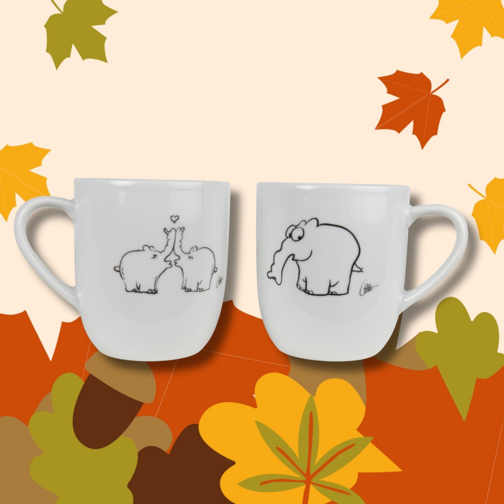 Egal ob mit Rüssel oder ohne, bei uns vergeht kein morgen ohne Kaffee, Kakao oder Ostfriesentee. Mit unseren neuen Bechern aus Porzellan stillst du deinen Durst stilecht!